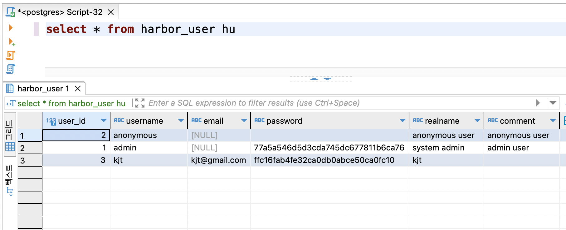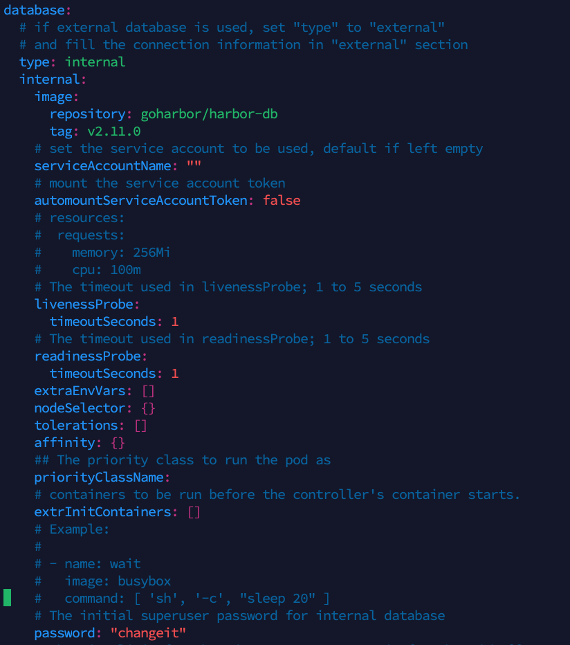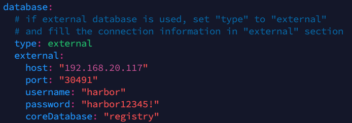 - Harbor 데이터베이스. internal 타입일 경우 database Pod로 동작
