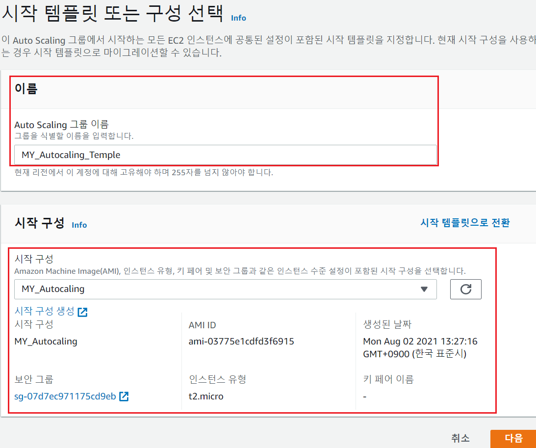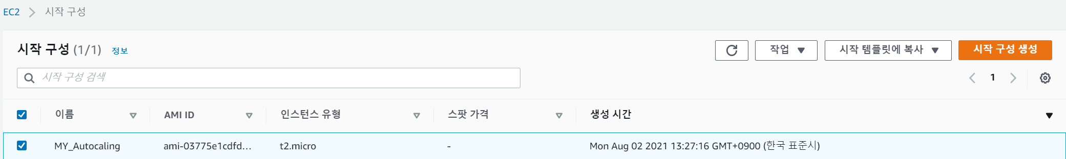 - AutoCaling 구성시 EC2 Instance가 아닌 EC2통한 생성된 AMI를 통해 진행