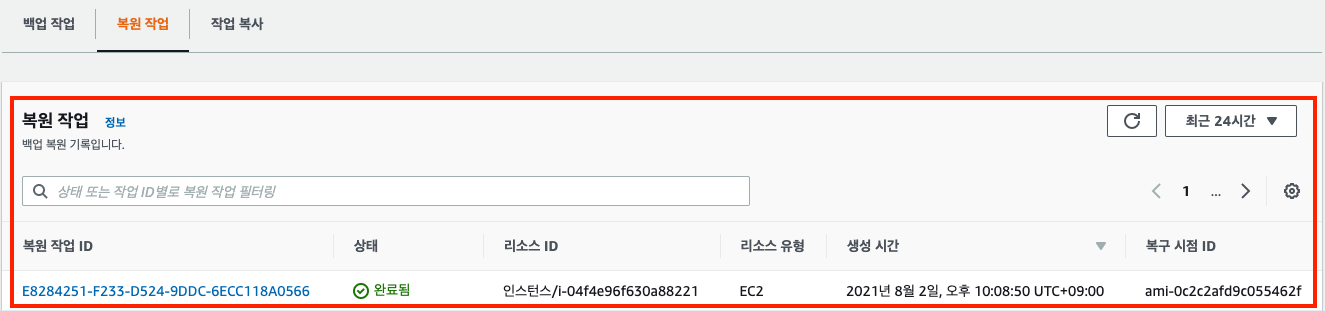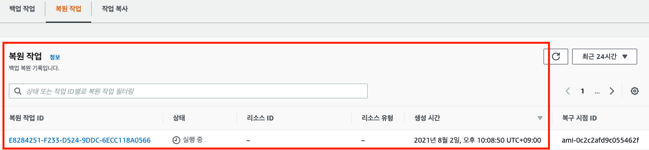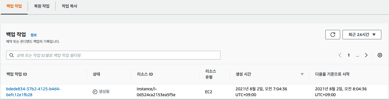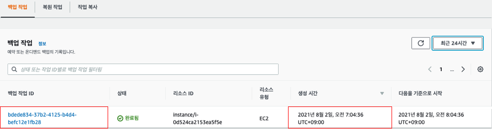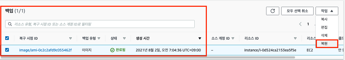 - 리소스 : 백업 유형 선택 / 리소스 인스턴스 ID