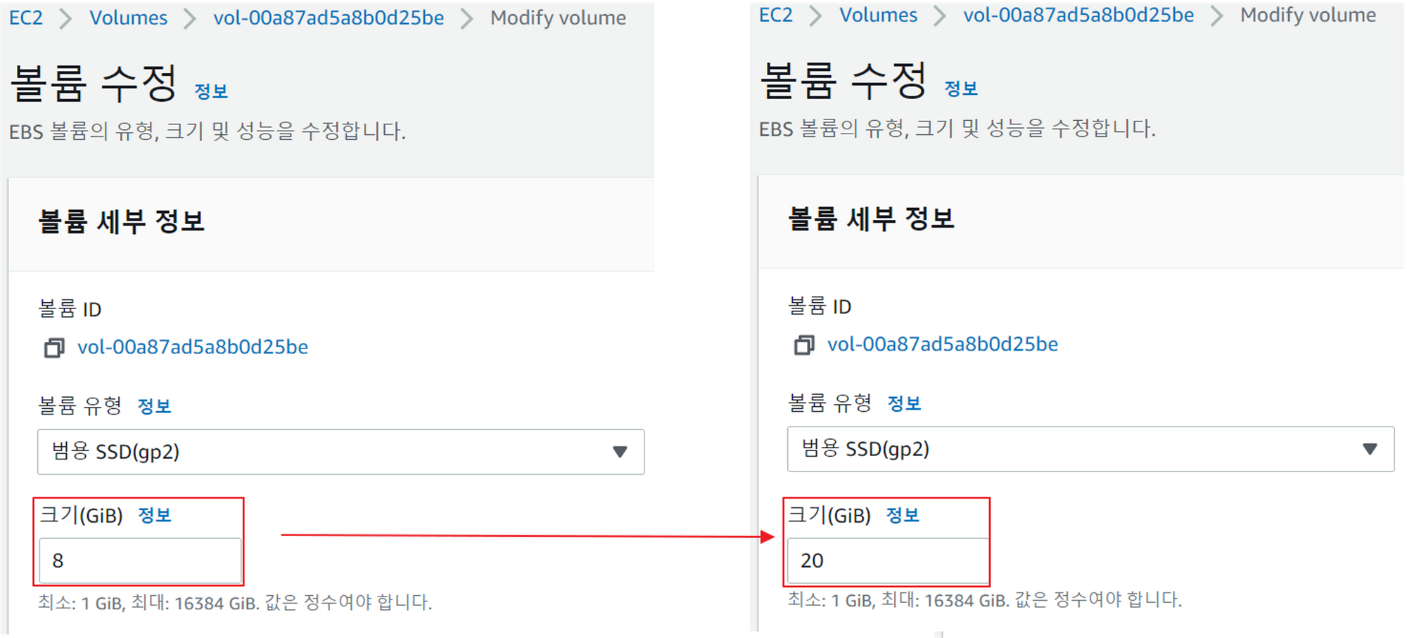 3. 볼륨 수정하기(8GiB → 20GiB)