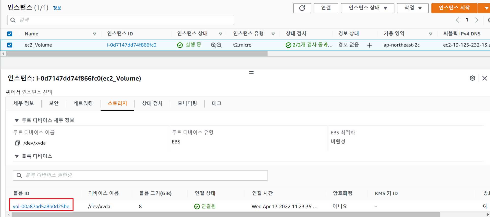 2. EC2 인스턴스 볼륨 선택( + 볼륨 생성)