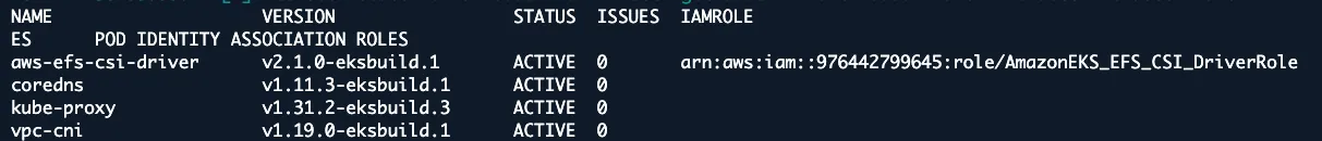--service-account-role-arn arn:aws:iam::976442799645:role/AmazonEKS_EFS_CSI_DriverRole\