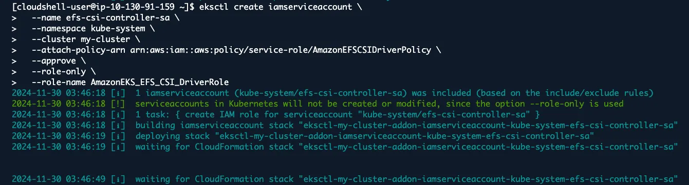 --attach-policy-arn arn:aws:iam::aws:policy/service-role/AmazonEFSCSIDriverPolicy \
