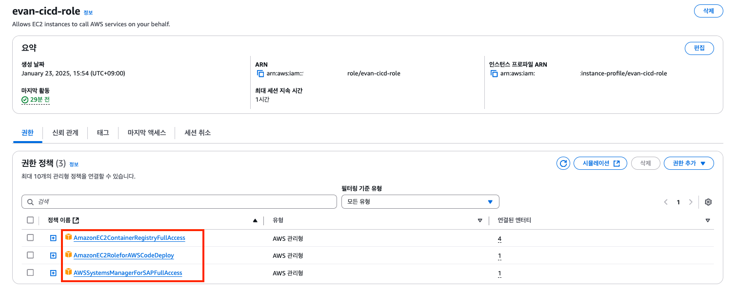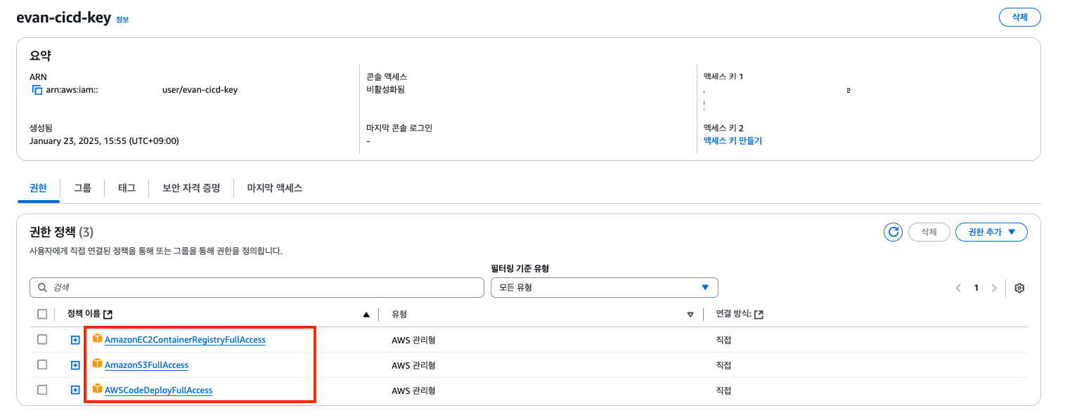 - IAM User 생성 및 AccessKey 발급(CICD용)
