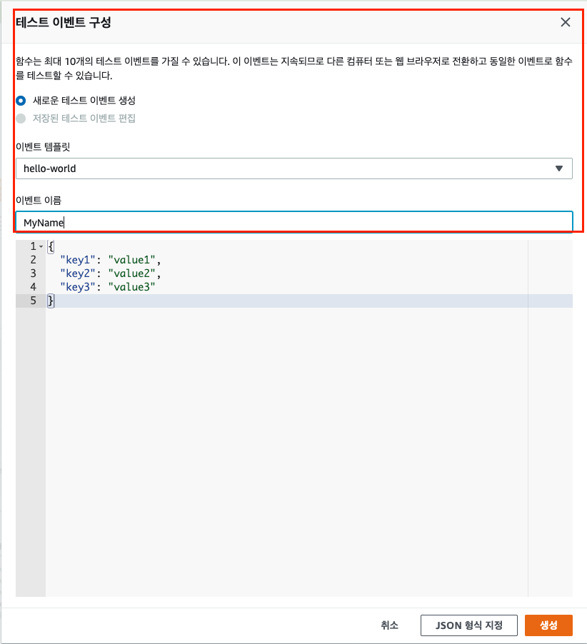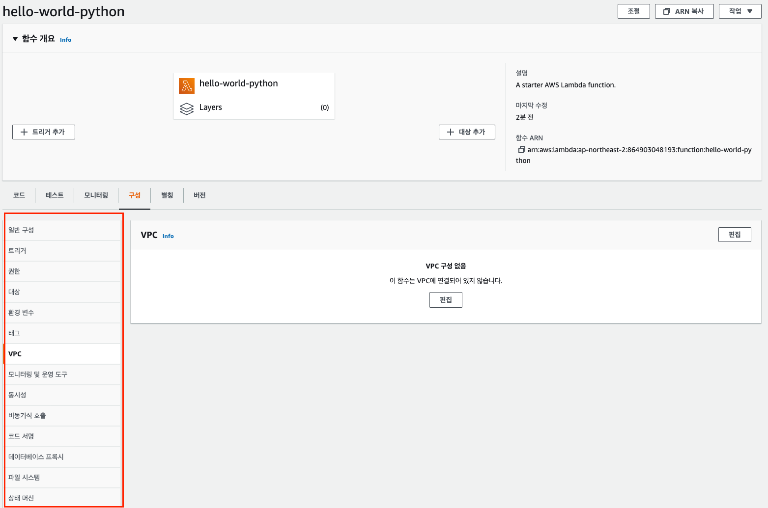 3. Lambda 상세 구성 정보 변경(실습이므로 기본 값으로 테스트)