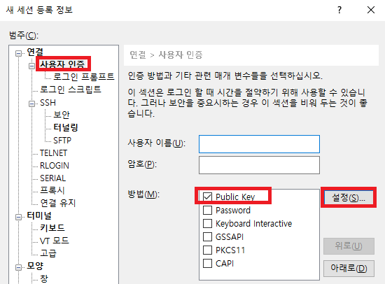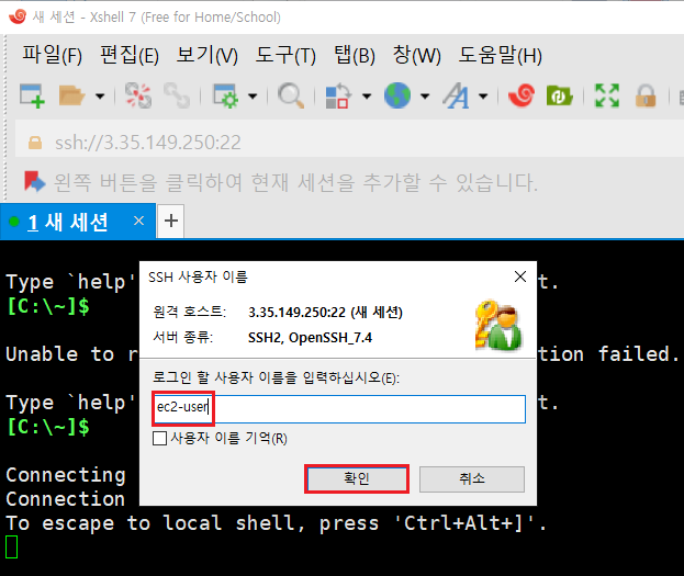Putty를 선택 할경우 PEM -> PPK변환해야 하기에 Xshell을 통해서 접속 하도록 하겠습니다.