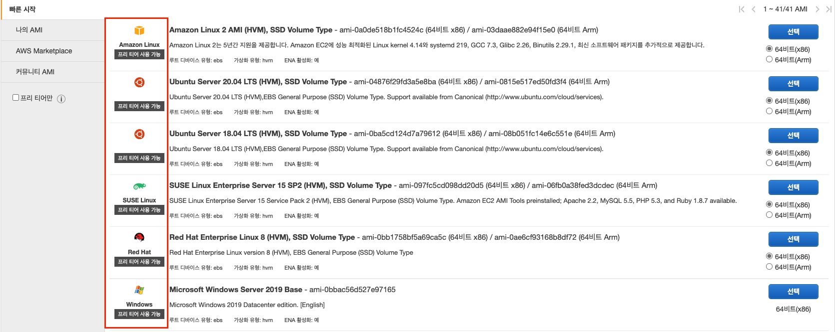 - EC2 테스트이므로 프리티어를 통해 구축 실제 업무에는 많는 스펙 선택하시면 됩니다.