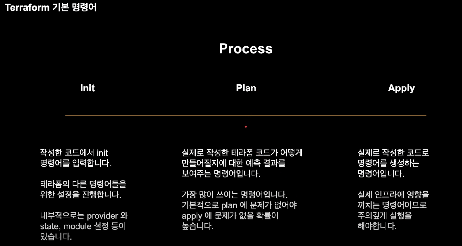 - provider : 테라폼과 외부 서비스(AWS,GCP,Azure) 연결해주는 기능을 하는 모듈