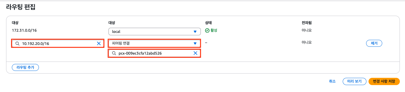 3. VPC Peering 라우팅 테이블 설정