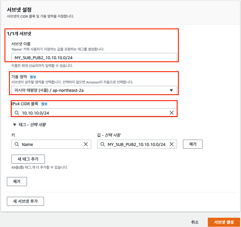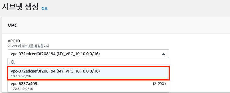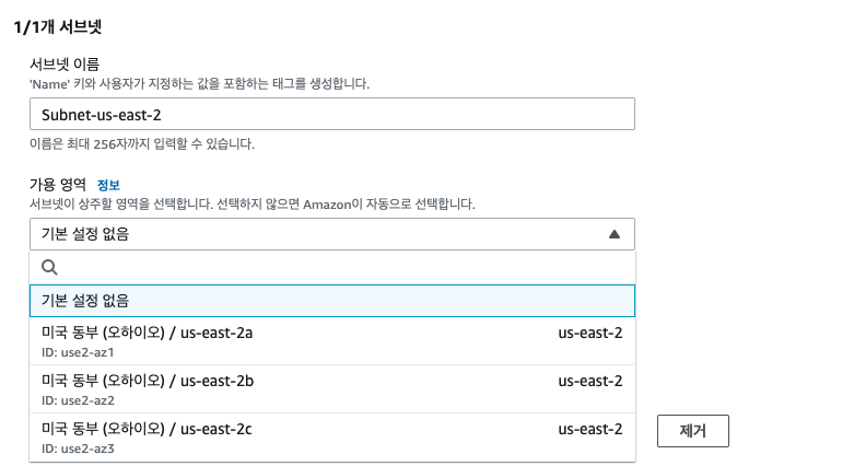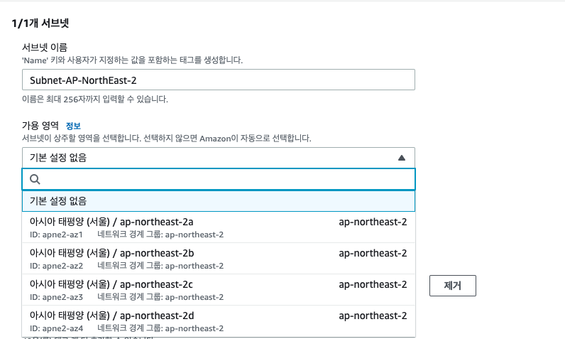 ex)10.10.10.0/24 -> AP-NorthEast-2a, Ap-NorthEast-2c 불가능