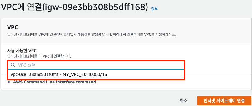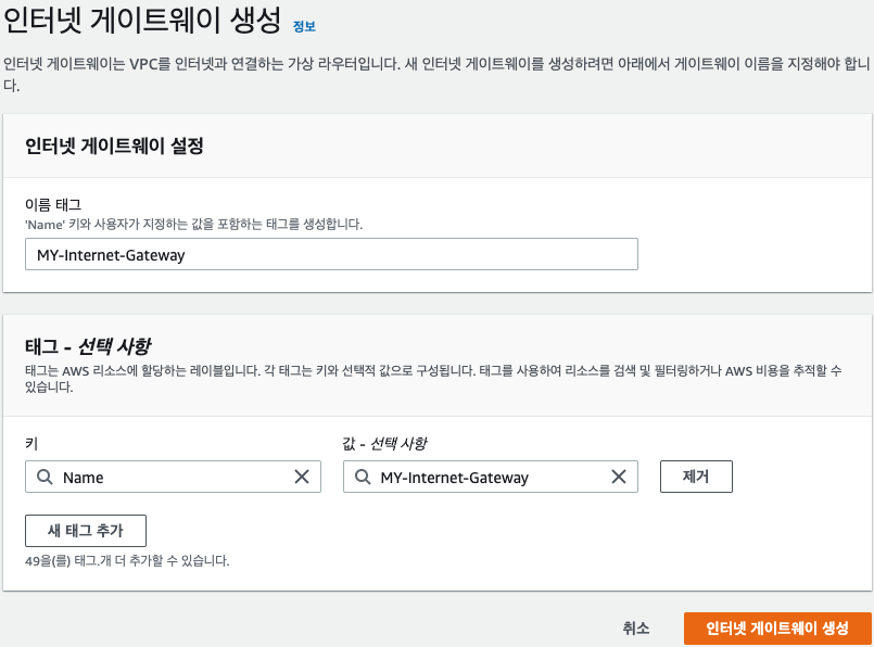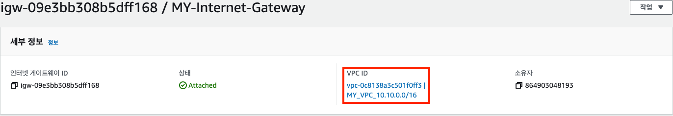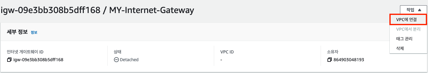 - 인터넷 게이트웨이 생성 방법 (6. Internet GateWay 참조)