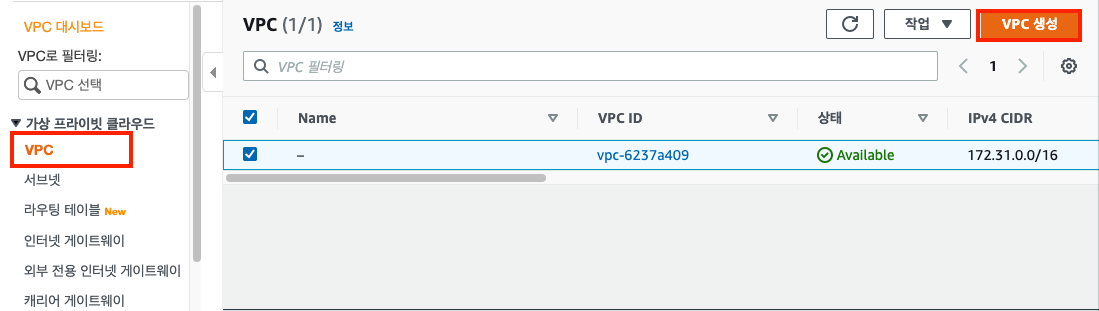 AWS는 각 리전별로 기본 VPC가 생성되어 있습니다. 그러나 Instance(EC2)를 구축하고 설계하기 위해서는 별도의 VPC를 구축하여