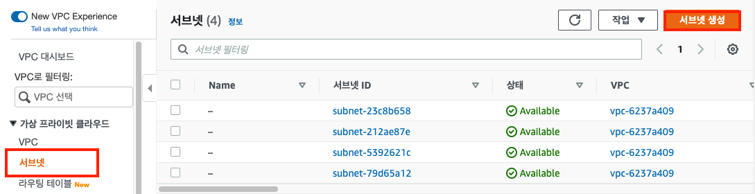 Subnet이란 큰 네트워크 대역을 VPC 주소를 잘 나눠서 사용하는 것을 이야기 합니다.