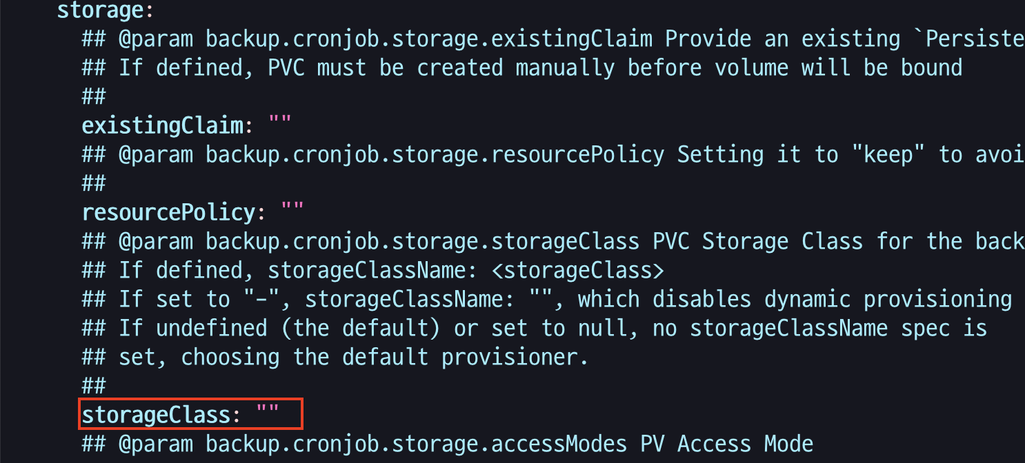 - 배포한 storageclass를 정의하거나, nfs storageclass defaults 설정하면 정의할 필요 없음